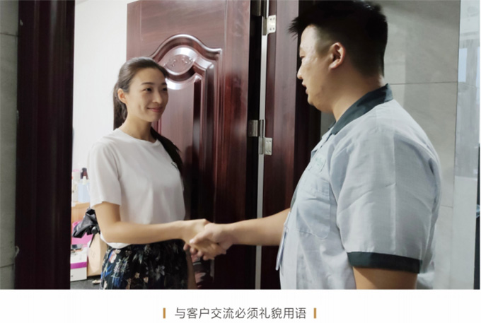 必須按照客戶約定,至少提前5分鐘上門,見到客戶時(shí)需自我介紹,并出示上崗證和名片,在進(jìn)入顧客家前應(yīng)穿上自備的鞋套。征得客戶同意后開始維修,嚴(yán)禁亂收費(fèi)。