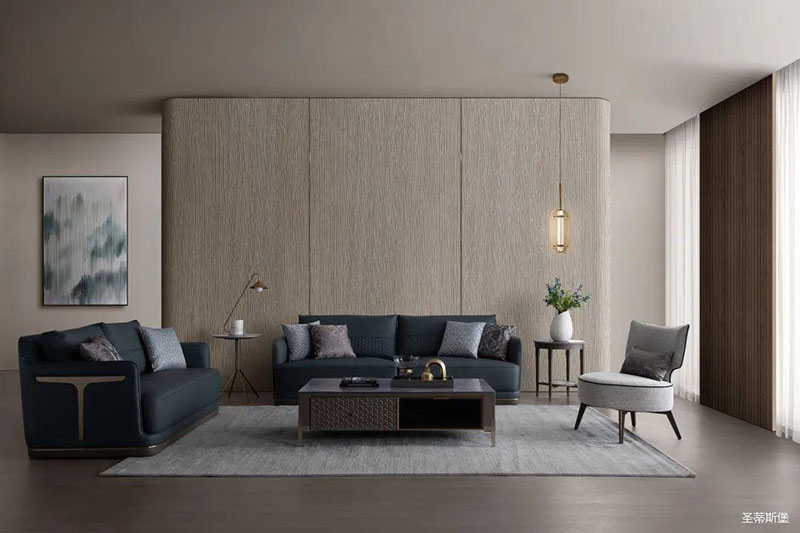 疏朗大氣的客廳空間,整體采用低明度的木紋色,在保留實(shí)木質(zhì)感同時(shí),也為空間增添了一縷木香。沙發(fā)線條利落干凈,深邃而浪漫的配色仿佛將居者帶進(jìn)了海洋世界。藝術(shù)編制皮料搭配金屬底座,時(shí)尚大氣質(zhì)感撲面而來(lái),將理性和感性完美結(jié)合,提高了居家的時(shí)尚格調(diào)。