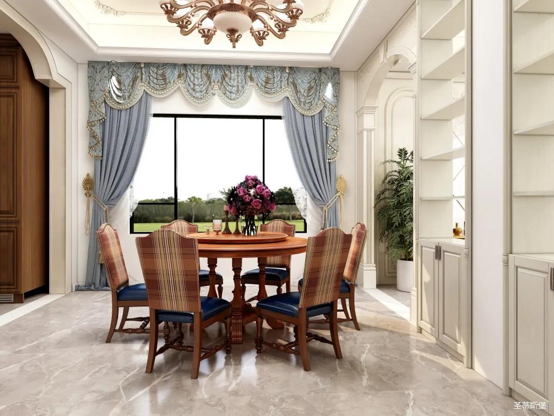 設(shè)計師將浪漫與莊嚴(yán)的氣質(zhì)從空間細(xì)節(jié)凸顯,半圓形的拱門和轉(zhuǎn)角的石砌,盡顯雍容華貴。綠植擺設(shè)清新不落俗套,白色線條使入墻空間層次感更為強烈,實木與歐美裝飾搭配的拱門,挑高的大面窗客廳,都令人心神蕩漾。