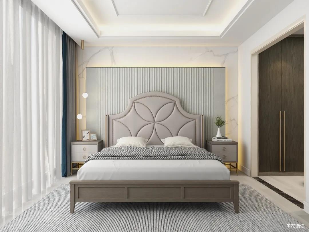 材質(zhì)的交替與光影的變換,具有濃濃的現(xiàn)代簡奢色彩。獨(dú)一無二的英倫爵士灰定制柜,由延邊鑲嵌的香檳金拉絲金屬分割,線條流暢且奢華,不僅代表著時(shí)尚,也崇尚了實(shí)木韻味。設(shè)計(jì)師將現(xiàn)代、實(shí)用、精致的藝術(shù)設(shè)計(jì)風(fēng)格應(yīng)用其中,更是精致生活方式的藝術(shù)演繹。在平靜的空間中表現(xiàn)出獨(dú)特的藝術(shù)骨感,滿足我們對(duì)精致生活的精神追求。