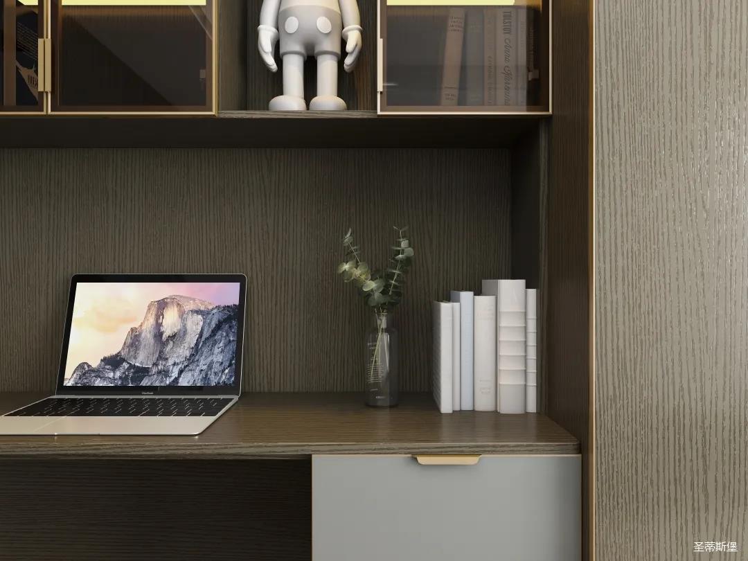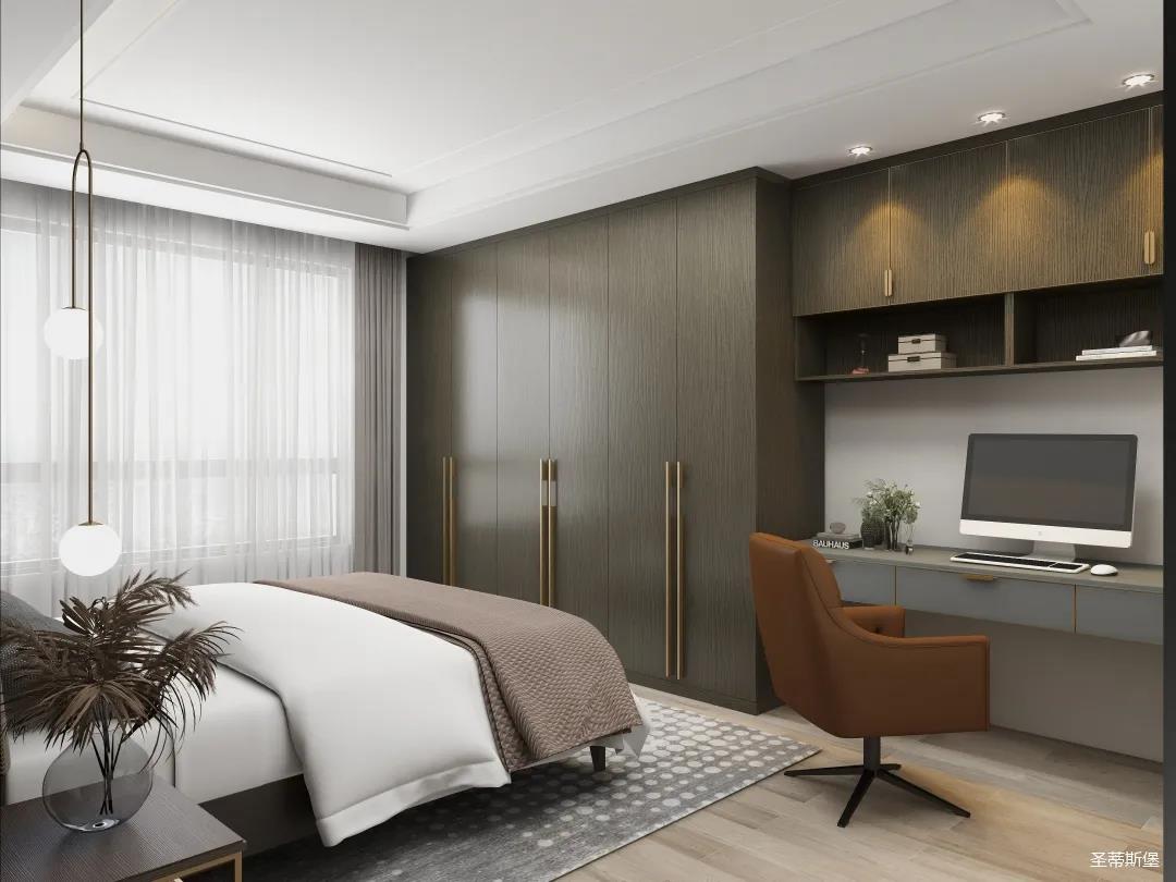 別具一格的定制,都是通過高級(jí)材質(zhì)與色彩來展現(xiàn)極簡摩登生活。一字型衣柜+書桌設(shè)計(jì),打造了“簡而不減”的別致空間。深邃的灰色系定制為空間注入現(xiàn)代都市風(fēng)情,在品位簡約中彰顯奢華氣質(zhì)!