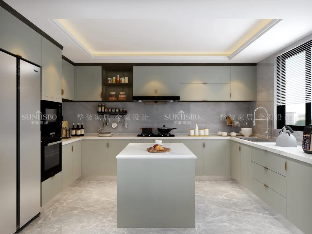 廚房的淺灰色調(diào)與明媚的自然光線重合,由空到滿,完成了一場(chǎng)空間與質(zhì)感的展示。案臺(tái)上擺放的居家生活用品,充斥著溫馨的生活氣息。質(zhì)感櫥柜線條秩序排列出廚房空間的簡(jiǎn)約主題感。日光穿過百葉窗,將生活空間梳理的溫柔且愜意!