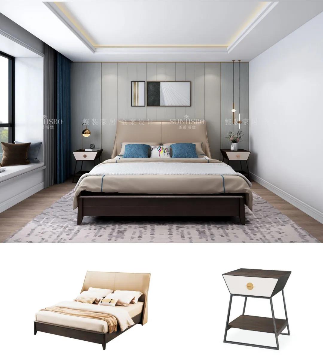 設(shè)計(jì)師運(yùn)用最為百搭淺灰實(shí)木護(hù)墻板打造主臥空間,簡(jiǎn)約的線條縱橫交錯(cuò),帶來了干凈、清爽、舒適的視覺效果。明暗分區(qū)的衣柜在燈光的渲染下,虛實(shí)光影變換其中,為每個(gè)角落氤氳出浪漫的氣息。