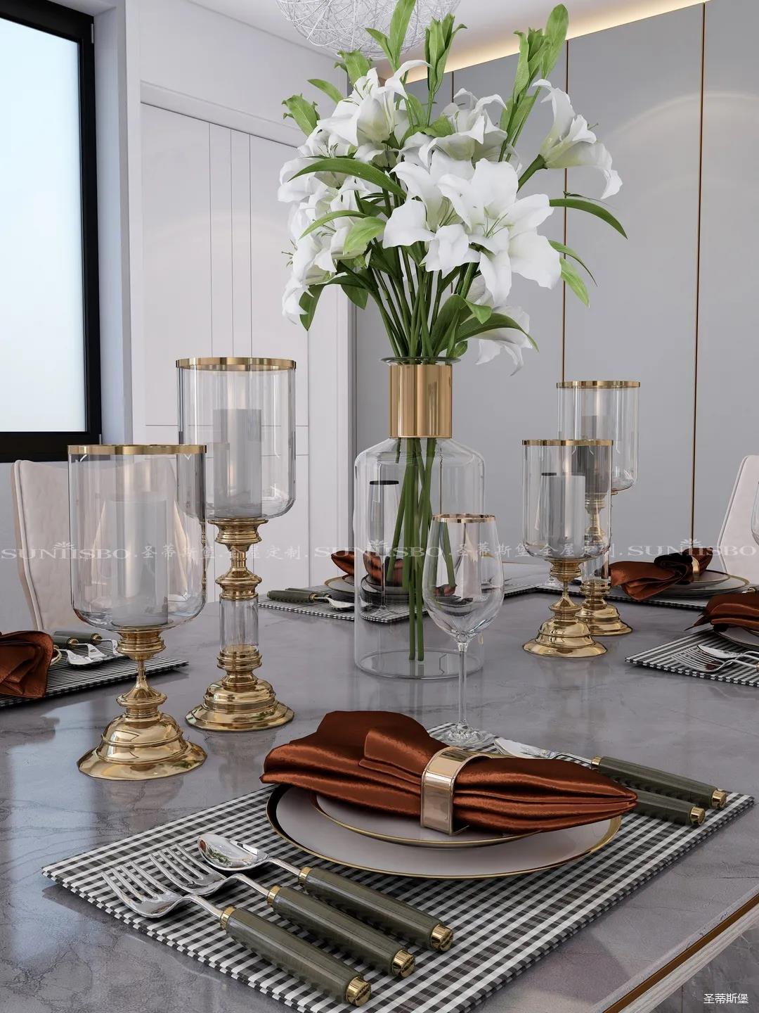 一束百合成了整個空間焦點,配套餐具是我和老公為新家精挑細(xì)選的,它讓用餐氛圍充滿了儀式感,讓我們在家的每一用餐時刻都像是在向?qū)Ψ缴钋楦姘住?/p>