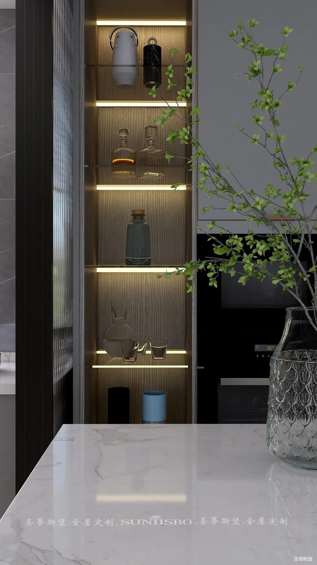 藏是漏的基礎(chǔ)。在社交軟件流行的當(dāng)下,親情之間也逐漸越來越遠(yuǎn),推演到空間,餐廚之間需要的不再是實墻的阻隔,而是用長虹玻璃代替,開合之間,他的認(rèn)真,你的可愛,都能在不經(jīng)意間盡收眼底。