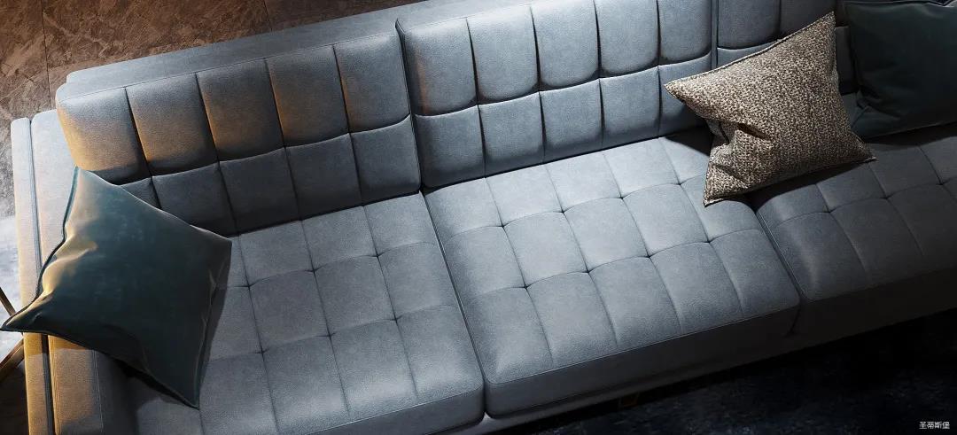 極具細(xì)節(jié)考究的“霸氣”沙發(fā),從霧霾藍(lán)的色彩中彰顯著業(yè)主沉穩(wěn)氣質(zhì)與時尚品位。線條規(guī)律整齊,方塊式的設(shè)計(jì),以摩登時尚演繹著優(yōu)雅的幾何美學(xué)力量。