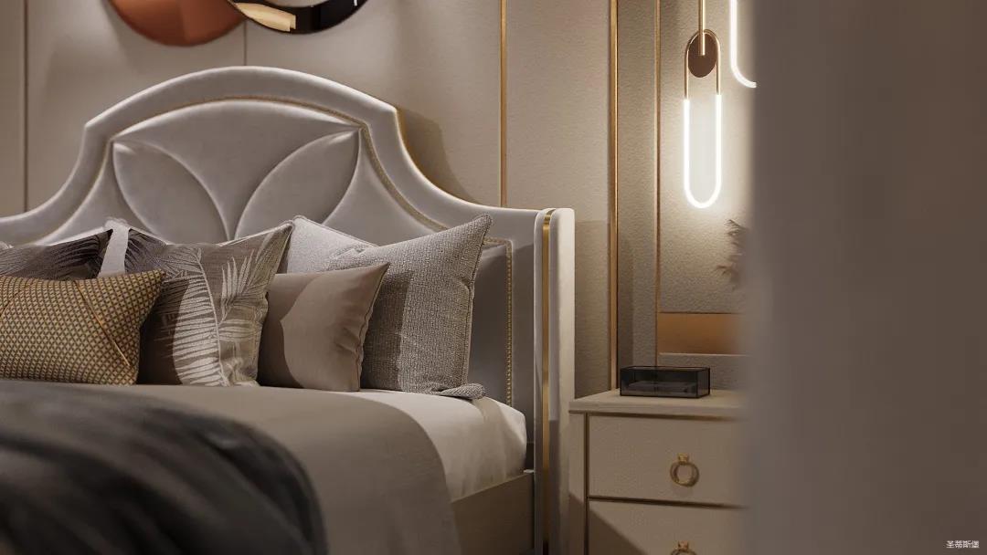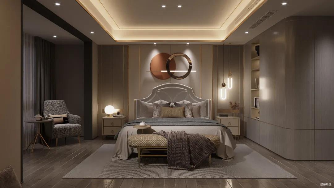 臥室空間整體以護(hù)墻板定制為主,整體設(shè)計(jì)注重空間簡約、自然,沒有繁雜的裝飾。結(jié)合業(yè)主對理想家的想象,采用暖色調(diào)來襯托溫馨實(shí)感,延伸業(yè)主對家的定義,用最質(zhì)樸的木紋融合極簡線條平鋪的形式,體悟自然的溫度,為都市生活帶去不一樣的體驗(yàn)感。