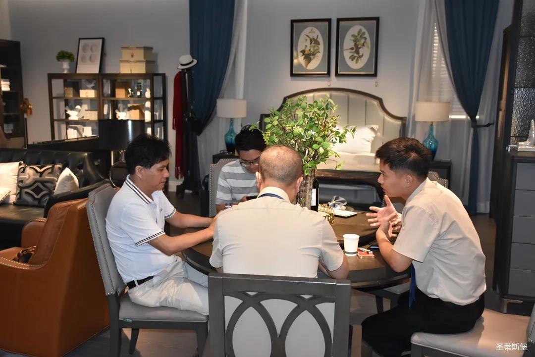 展會(huì)期間,全國(guó)家居建材連鎖巨頭—紅星美凱龍集團(tuán)鄭總一行蒞臨圣蒂斯堡營(yíng)銷中心進(jìn)行參觀交流。集團(tuán)領(lǐng)導(dǎo)熱情接待,雙方進(jìn)行了深度洽談,并一起參觀了洛斯、里奧、洛卡等展廳。