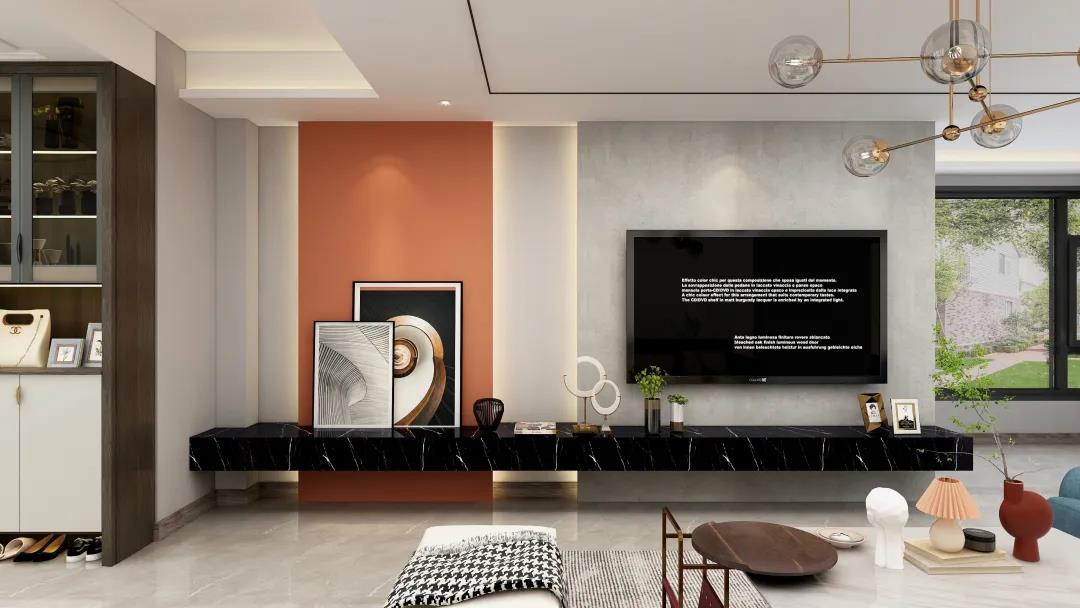 窗外的陽(yáng)光使得客廳空間更加明亮寬敞。電視墻精致的線條設(shè)計(jì),令空間更具層次感。亮眼的愛馬仕橙,搭配個(gè)性的抽象掛畫又讓整個(gè)墻面更加豐富?;盍εc沉穩(wěn)融合,給平凡而枯燥的生活增添些許希望與美好。