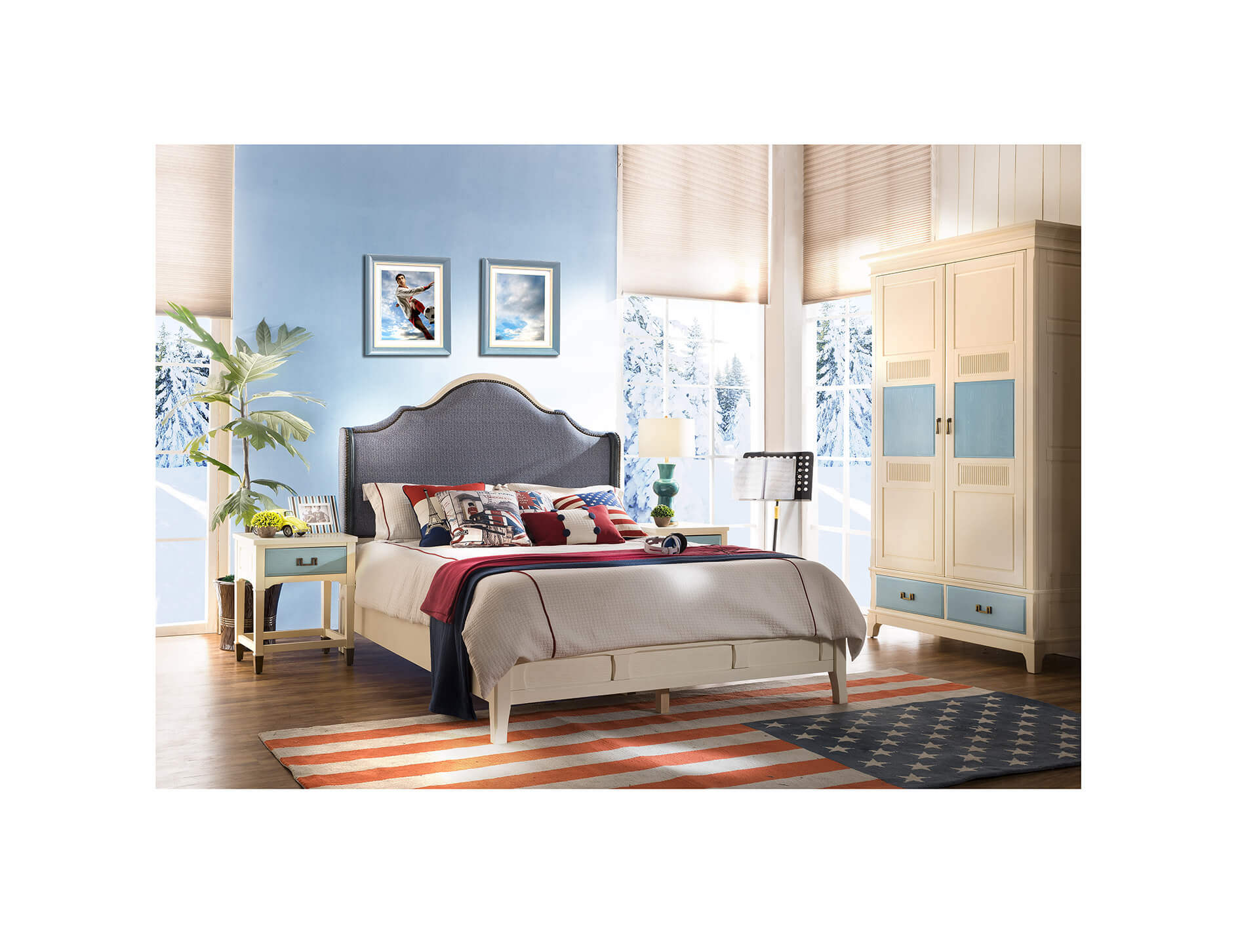 CTG-107床頭柜白+藍(lán)
